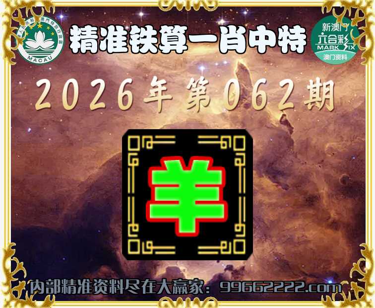 062期:《精准铁算》 ✂️一肖中特✂️【羊】开:羊24准