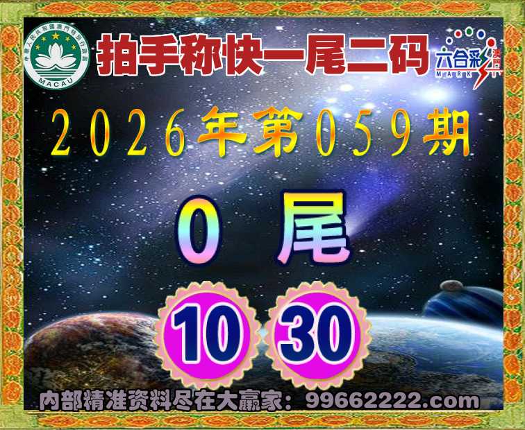 059期:🥧拍手称快🥧一尾二码🥧【0尾主:10.30】开:10