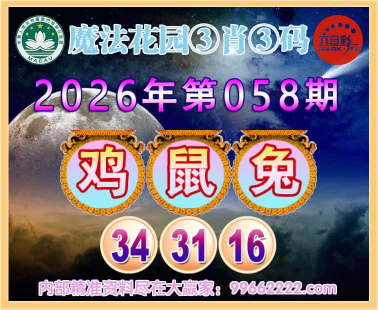 058期: 🥽『魔法花园』 🥽③肖③码🥽【鸡鼠兔】【34.31.16】开:鼠31准