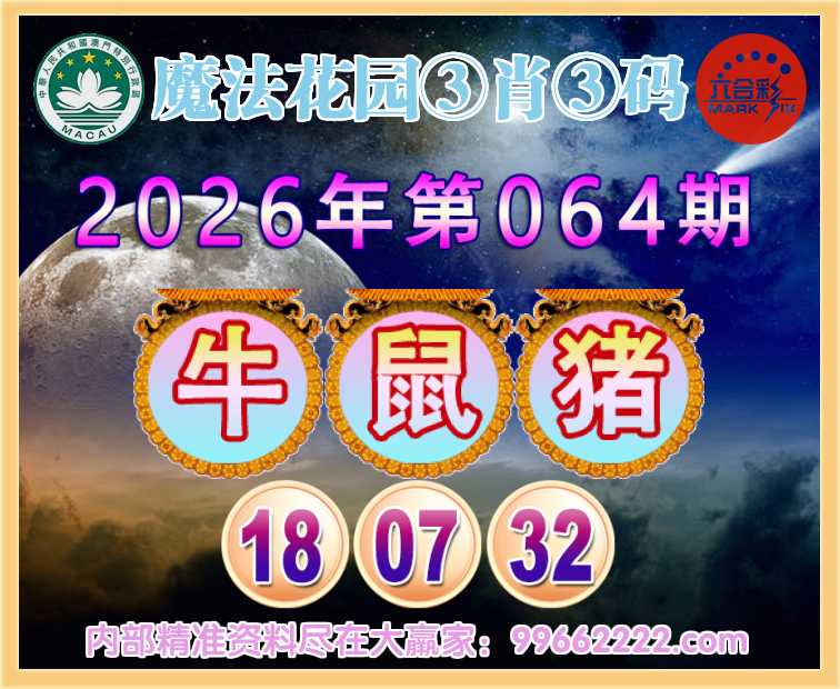 064期: 🥽『魔法花园』 🥽③肖③码🥽【牛鼠猪】【18.07.32】开:牛18准